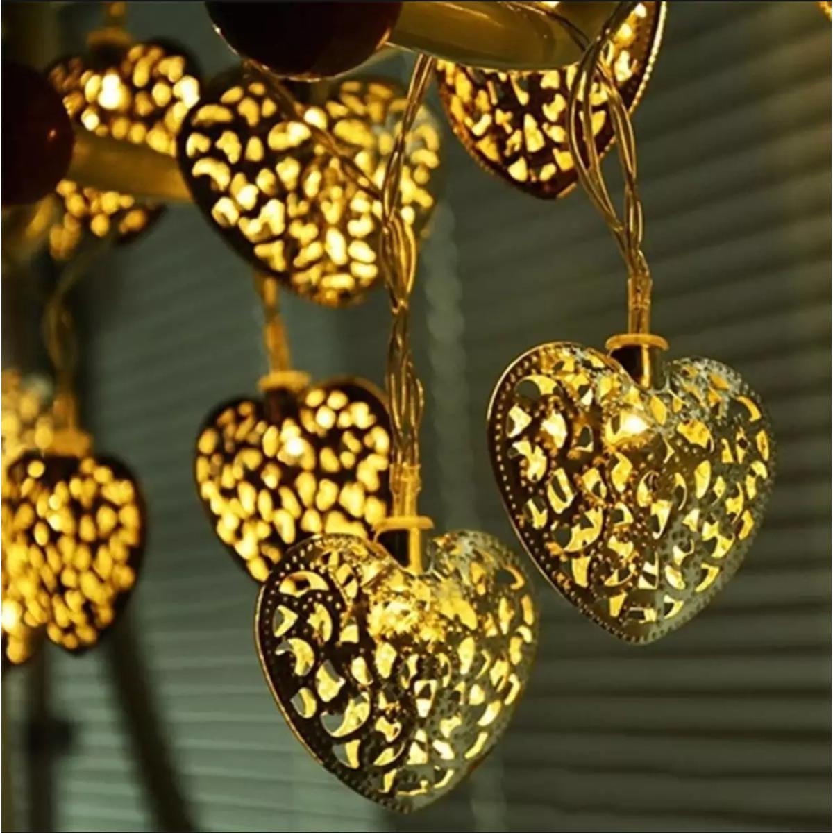 💖 ঘর, বেডরুম বা পার্টি স্পেসকে দিন রোমান্টিক ঝলক Metal Heart-Shaped Golden Fairy Lights দিয়ে!
