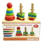 Wooden Rainbow Three Column Sorting Tower – Montessori Stacking & Learning Toy for Kids